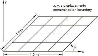 Create a three-dimensional planar shell part, and name it Plate. Use an approximate size of 5.0. Sketch a square where all sides are 1.0 m long, with the lower-left vertex at (0, 0, 0). Delete all perpendicular and vertical constraints, and apply the following:fixed constraints to the lower-left and lower-right vertices,horizontal constraints to the top and bottom edges (if they are not already defined),parallel constraints to the left and right edges, andan angle dimension to the lower-left vertex (90°).