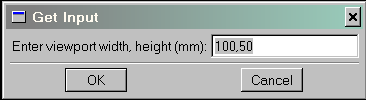 The eval function in the third line of the macro converts the string returned by the getInput function into two integers. When you supply the default values shown in this example to the getInput function, the prompt and the text field in the dialog box that appears are shown in the following figure. If the user clicks [OK] or presses [Enter], the default values are accepted and returned to the getInput function. If the user clicks [Cancel], None is returned.