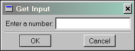 The float function on the third line converts the string returned by getInput into a floating point number. The following figure shows the dialog box that appears when this script is executed:
