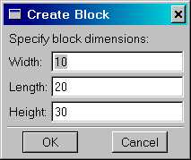 The getInputs function displays a dialog box in the center of the main window, and the user enters the requested values in text fields in the dialog box. The values are returned to the executing script as a sequence of Strings after the user clicks the [OK] button or presses [Enter]. Optionally, you can specify default values to be displayed in the text fields. For more information, see getInputs().